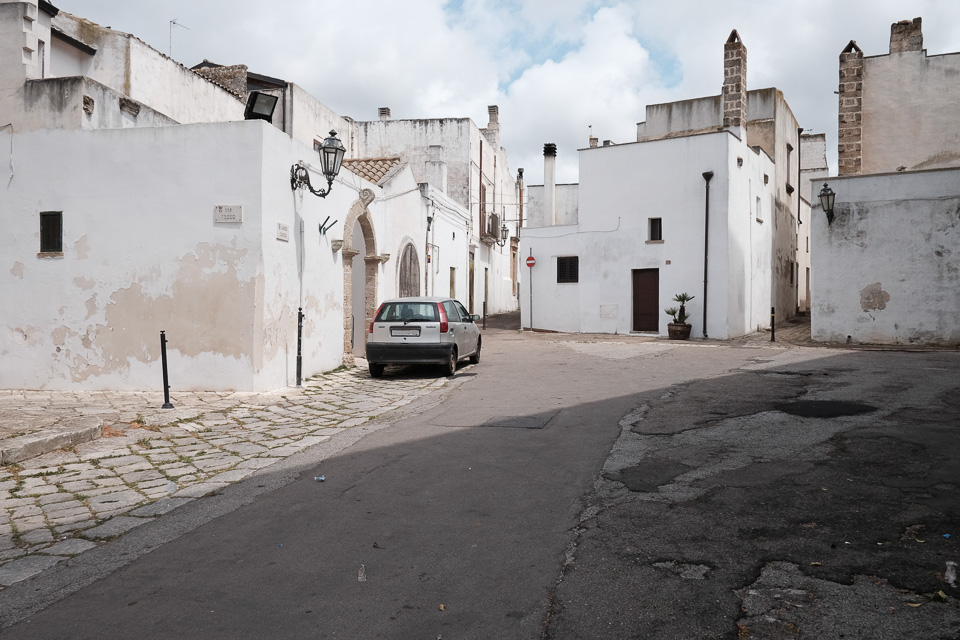 Uno scatto nel tuo stile direi. Luoghi non eclatanti, non gridati con colori che ben si adattano al tipo di scena e la rafforzano. A differenza di altre tue proposte trovo un dettaglio di troppo, un elemento che “stona” con l’atmosfera che hai fermato. Mi riferisco all’automobile. Io non ce la vedo molto in uno scatto del genere che pare senza tempo e senza riferimenti a cose e persone. Non saprei, ma l’auto finisce per diventare il vero soggetto della composizione (magari era poi questo il tuo fine….se è cosi’ cancella il mio appunto).
