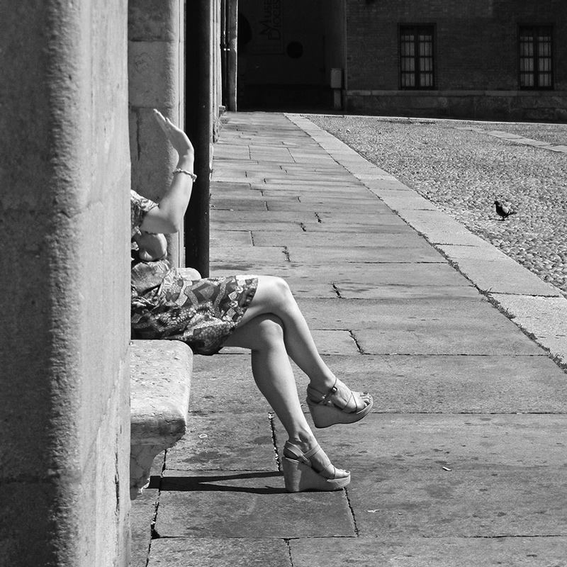 Bella immagine,ottimi il formato ed il bn.Interessante il gesto ambivalente della signora:un saluto o un diniego?Non secondaria la presenza del colombo che,da solo,bilancia il lato destro.Complimenti!  _________________ Sergio Demitri https://www.flickr.com/photos/124946035@N02/ |