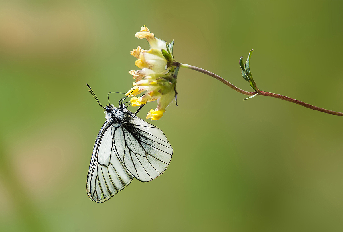 una Aporia crataegi (Pieride del Biancospino)