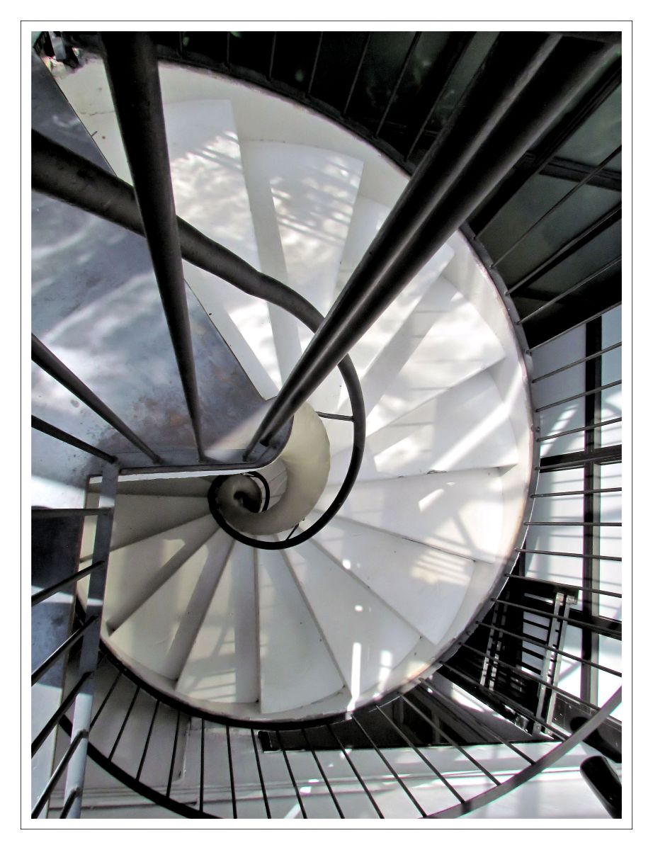 Non dispiace ma avrei curato meglio la composizione. Ad esempio la parte inferiore dove è stata tagliata una parte della scala.. oppure avrei isolato solo la parte centrale bianca..