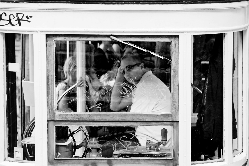 troppo stretta l'inquadratura, il tram si intuisce a malapena anche se i soggetto principale è l'espressione stanca e annoiata del manovratore.  |
