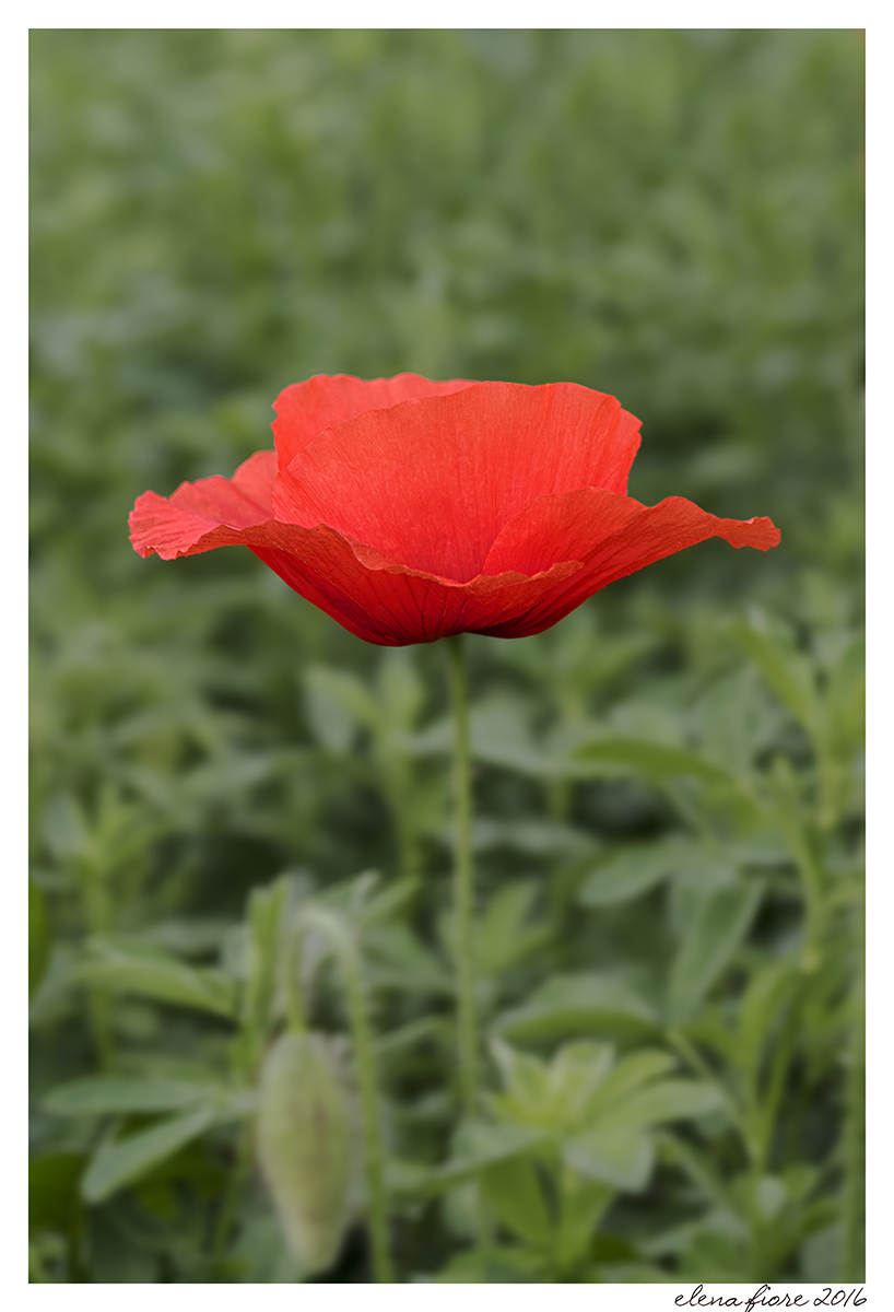 Anche se confesso, riguardandola, che non afferro completamente il motivo per cui lo stelo del papavero resta completamente sfocato come i piani di sfondo.... essendo più o meno allo stesso livello del centro papavero invece perfettamente a fuoco....