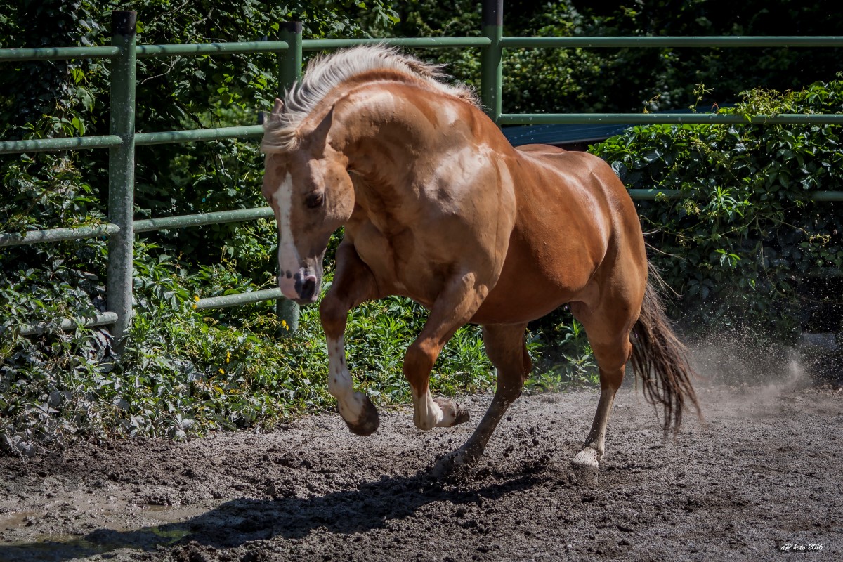 Mi piace quest'immagine, ottimo l'attimo colto, una foto che mette in mostra la muscolatura e l'energia di questo poderoso stallone. Complimenti  |