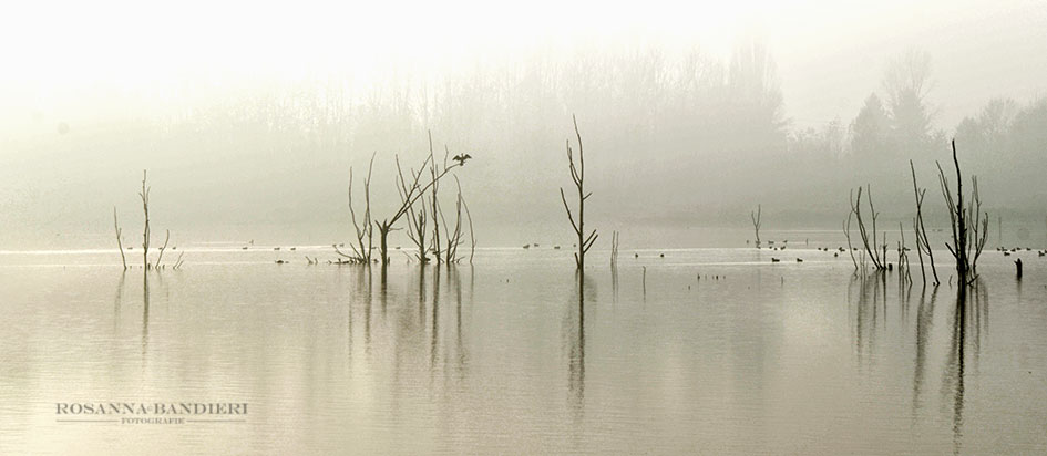 Entrando invece in altro discorso strettamente visivo, solo io avverto nelle zone luminose del cielo degli artefatti obliqui? M'inganno e vedo quel che non c'è oppure è il sole nella bruma mattutina? | eccomi!!!! si, il sensore è un po' incasinato.. ho provato a pulirlo con pessimi risultati ,, Le scie oblique ci sono...ci sono anche nello stato originale, credo sia il sole che si infila in mezzo alla nebbia... Ho un po' aumentato il contrasto per far vedere i rami e il cormorano.. perché in realtà era quasi un unico muro di nebbia fitta da cui filtrava, pochissimo, il sole..Se deciderò di stamparla, probabilmente stamperò la versione originale, dove si vede pochissimo...ma per il forum, se postavo la versione senza modifiche, sarebbe diventata quasi illeggibile..