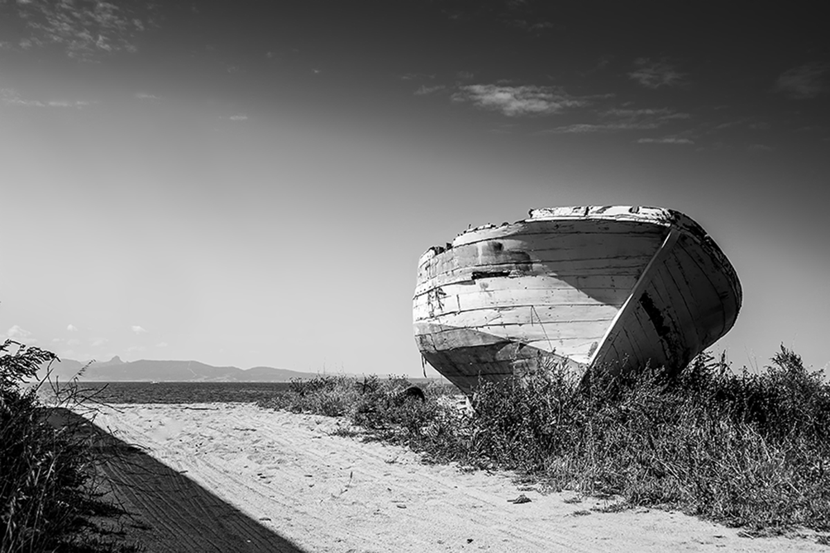 Bello il pdr e il b/n graduato . Ottima ripresa di questa barca lasciata al margine della sabbia .  |