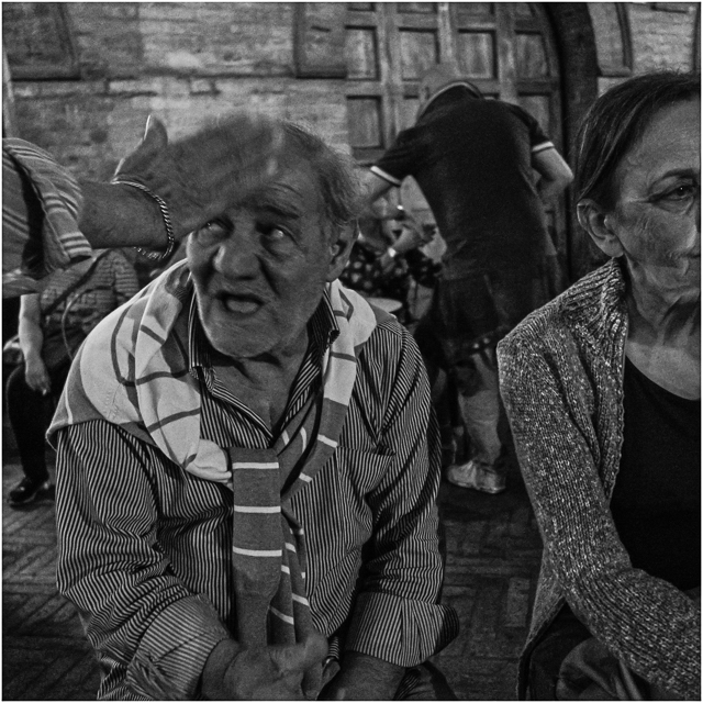 I tagli del volti sono interessanti quanto le espressioni dei soggetti. Stona la schiena dell'uomo dietro ma pazienza.