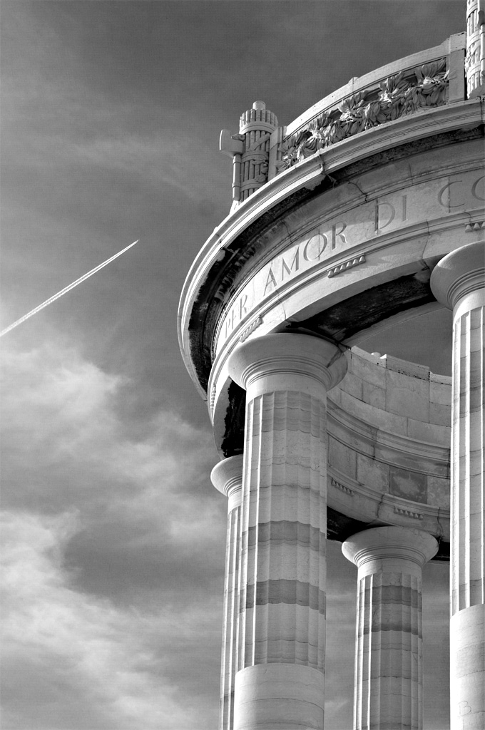 Beh, nessuna elaborazione particolare.. solo un'addrizzatina di 30sec in Photoshop e un po' di maschera di contrasto. Per il bianconero ho usato il 'channel mixer' di Photoshop su un livello duplicato, per 'emulare' l'uso di un filtro rosso in fase di ripresa. Nell'album ho messo anche l'originale a colori e la 'tappa intermedia'. Ho scattato dai piedi del monumento con l'economicissimo 50/1.8 Canon montato sulla mia 300D.