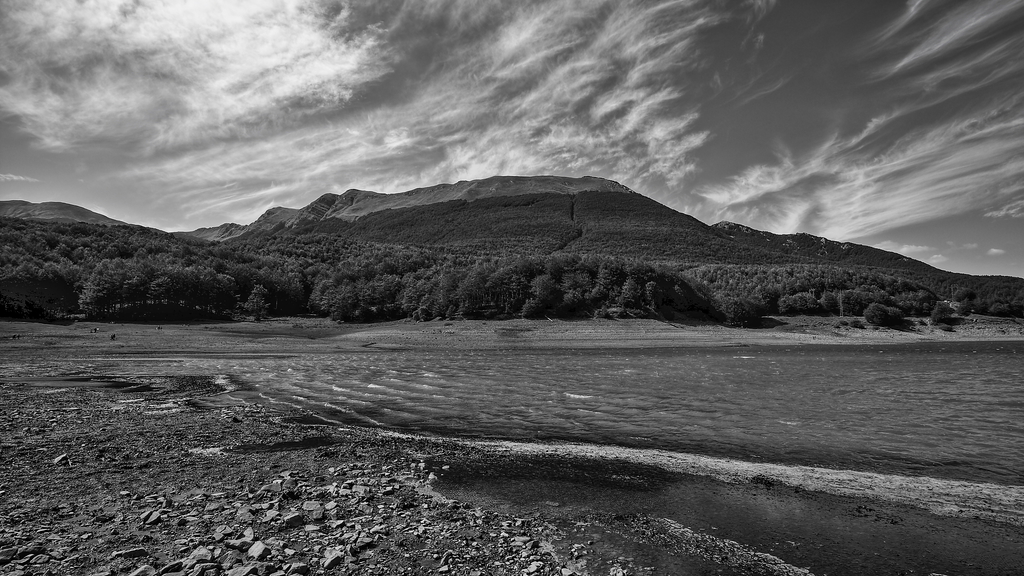 Immaginala con i medi grigi del cielo piu aggressivi, quindi , piu tenebrosi e la parte davanti , o meglio , solo le pietre con un apertura dei bianchi piu decisa e lucente... secondo me acquisterebbe di non poco . Comunque bella la tua versione e buona l'apertura delle ombre sugli alberi che, in b/n danno sempre un pò di noia  |