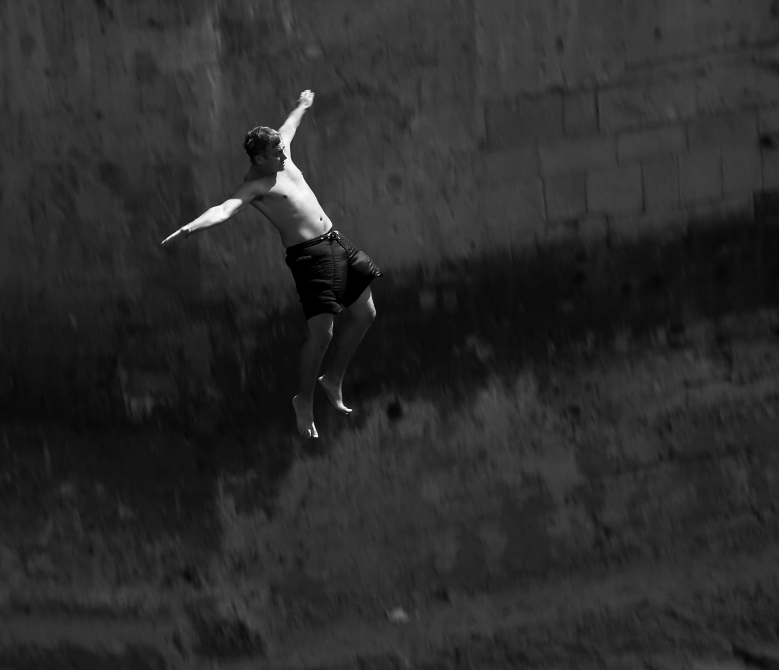 In questa foto ad esempio, presentandola singola, cosi' come e', non conoscendo a fondo l'autore e non avendo altri appigli per formare un mio pensiero piu' ampio, parto personalmente dal lato emozionale e questa foto mi fa pensare all'azione intrapresa dal soggetto, un salto nel vuoto, spero acqua in fondo, e alla bella luce che rimbalza sul suo corpo, noto pero' che a mio giudizio, pensando che eri appostato, magari si potevano alzare i tempi cosi da congelare il soggetto, ma questo e' un aspetto soggettivo che il commentatore da come input, solo questo.