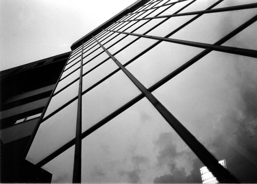 perchè la scelta del b&w? un bel cielo azzurro su questi vetri sarebbe stato molto piu' d'effetto... non credi?