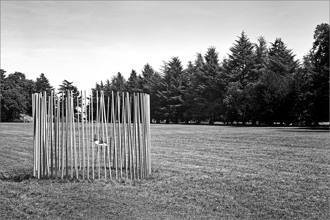 Grazie Clara per il graditissimo commento.Si tratta di una serie di installazioni a gabbia,anche se solo simboliche,costituite da paletti colorati.Domani ne posterò una a colori dove sono "prigioniere" alcune piante.Ciao,Sergio.