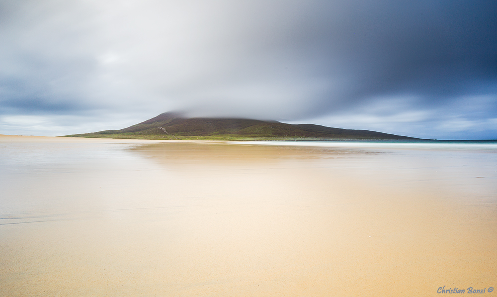 davvero eterea quest'isola che fuoriesce in basso dalla distesa di sabbia ed incappucciata in alto dalle nuvole. Secondo me da raddrizzare.