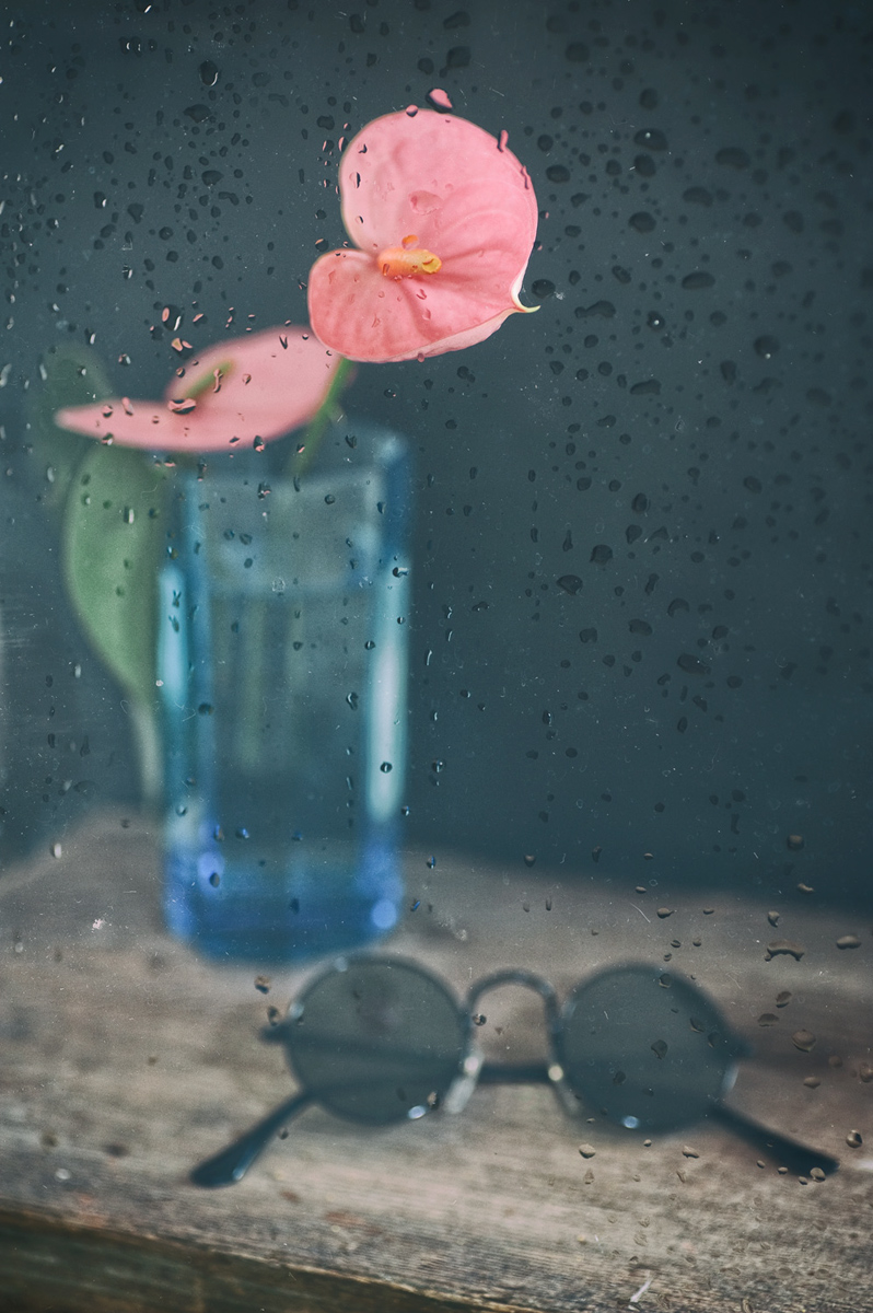 Sai che questa foto mi piace molto. Le tinta dei petali spicca meravigliosamente nel grigio imperante della giornata uggiosa. Carino anche il tocco degli occhialini rotondi alla base, come a ricordare che la lettura è ottima compagna di una giornata di pioggia. E la foto si fa piccolo racconto, oltre che esperienza visiva.