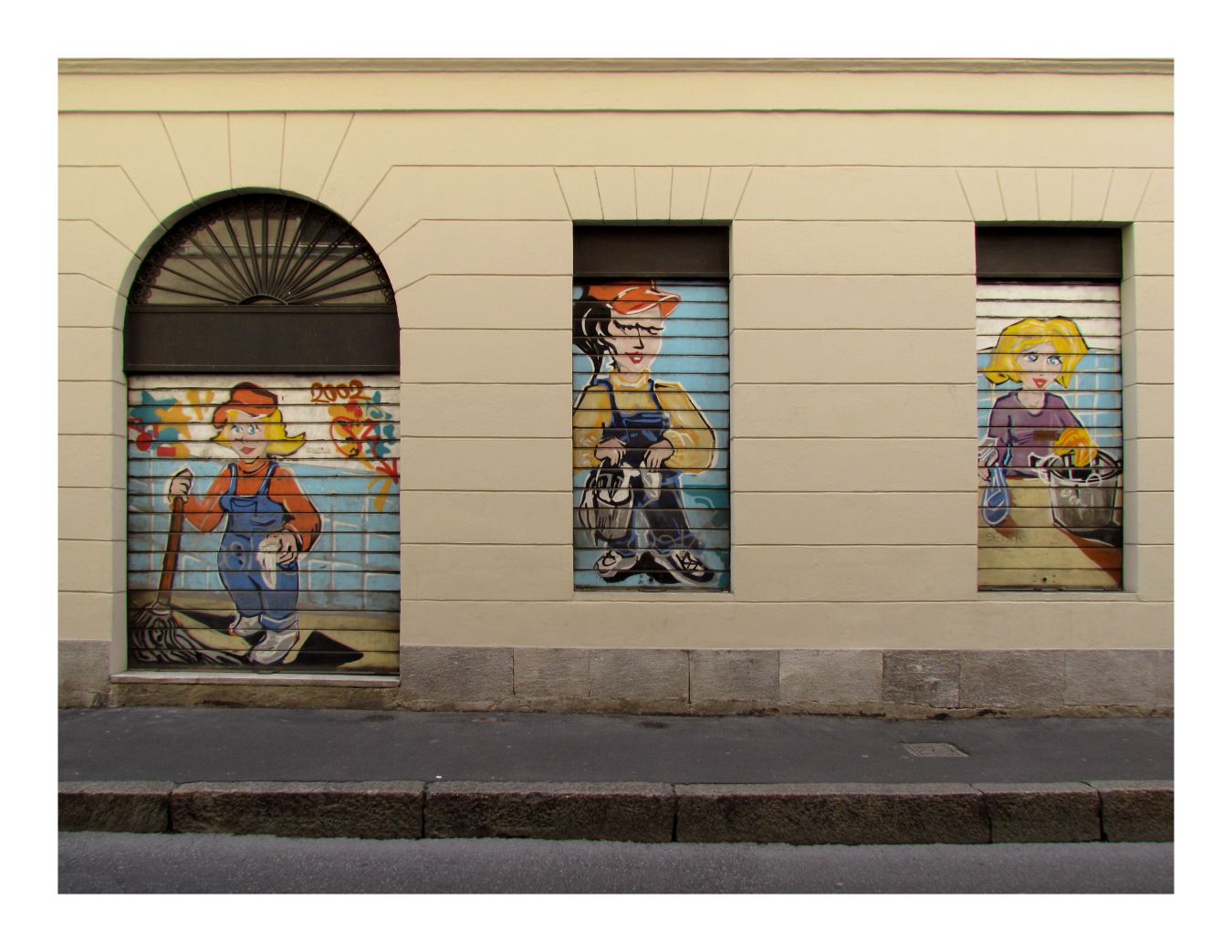 Roberto mi piace l'idea che hai avuto. se hai usato la maschera di contrasto si vede sul cornicione del muro in alto. forse f4 un po' pochino se volevi mettere a fuoco il tutto e gli iso un po' bassi infatti la vedo poco luminosa. forse alzarli avrebbe giovato anche a ravvivare i colori dei graffiti alle serrande.