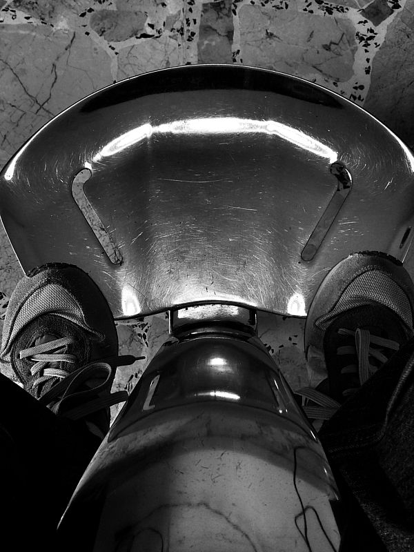 Non so dove tu sia realmente seduto (non ho mai visto poltrone di barbiere o dentista con quel supporto tra le ginocchia) ma trovo l'immagine curiosa e interessante Smile
