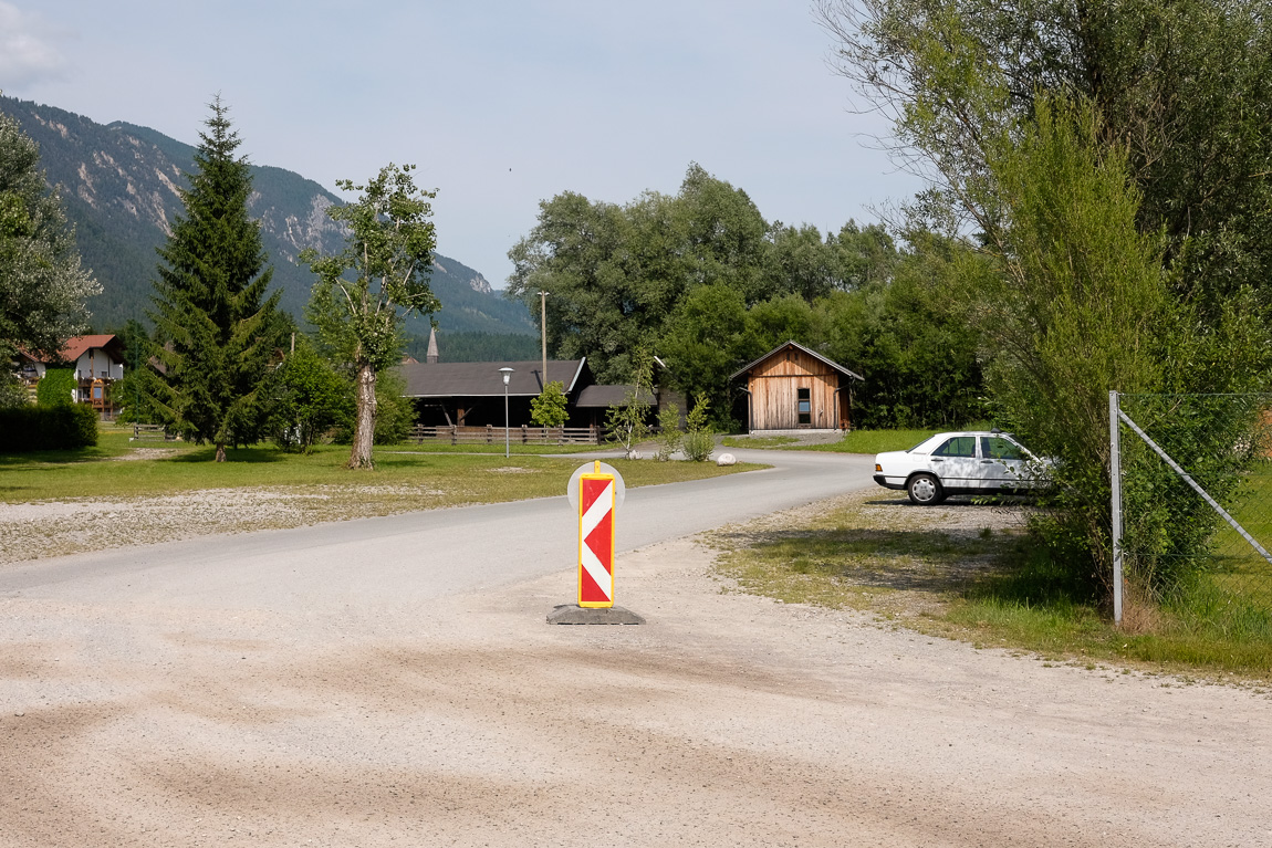 Il segnale dal colore forte intorno al quale si allarga un tranquillo paesaggio.Bella composizione ed ottimi e naturali i colori. Ok! Ciao