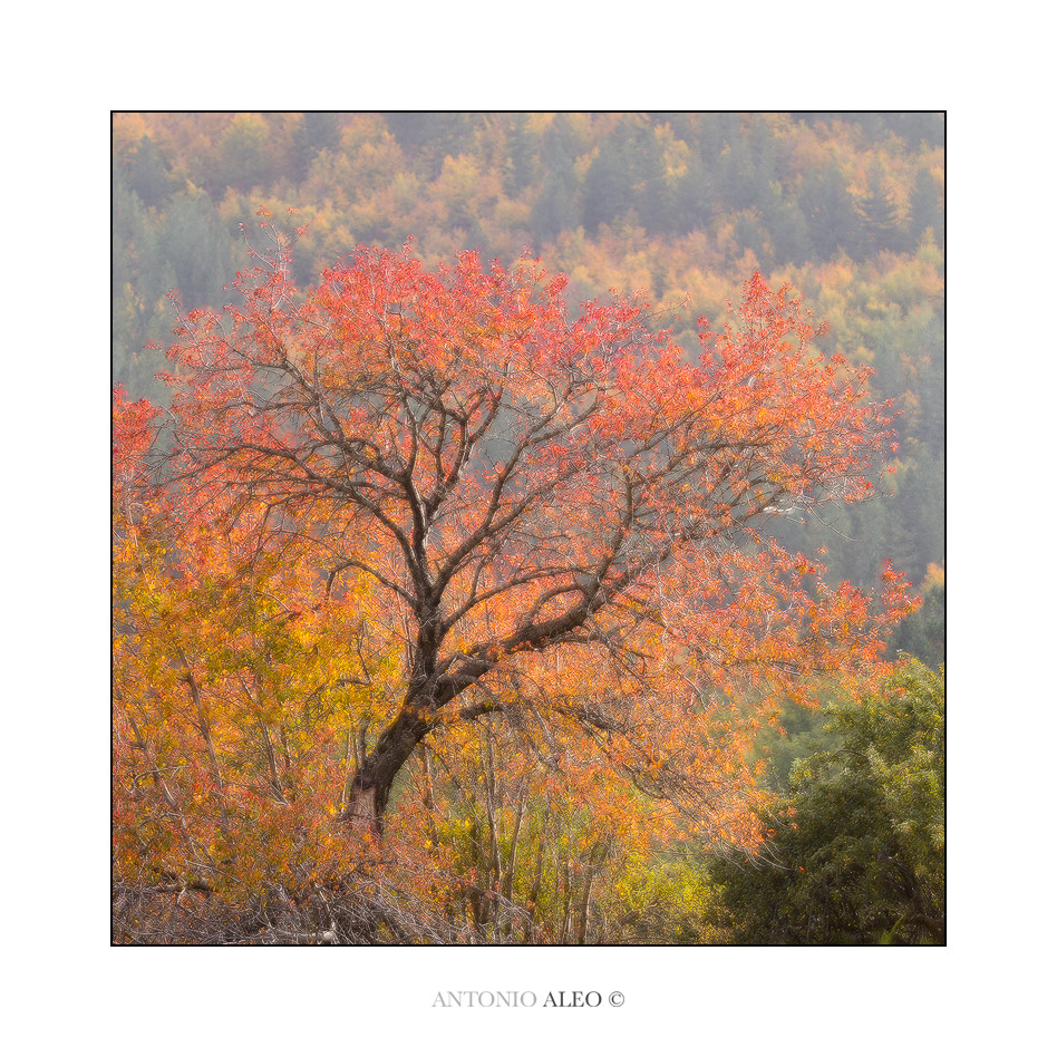 Splendidi i colori caldi dell'autunno e la composizione con il formato quadrato: Buono l'uso del filtro che rende l'immagine onirica Ok! Ok! Ok!