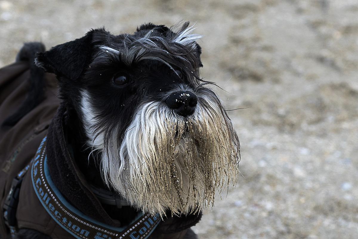luci molto contenute, e con ciò ogni particolare del manto è ben restituito. Il tartufo insabbiato è delizioso. Via un poco di spazio alla nostra destra ( pur preservando un minimo di respiro davanti al musetto, il vuoto mi pare troppo) . Un buffetto al mio amico blu....