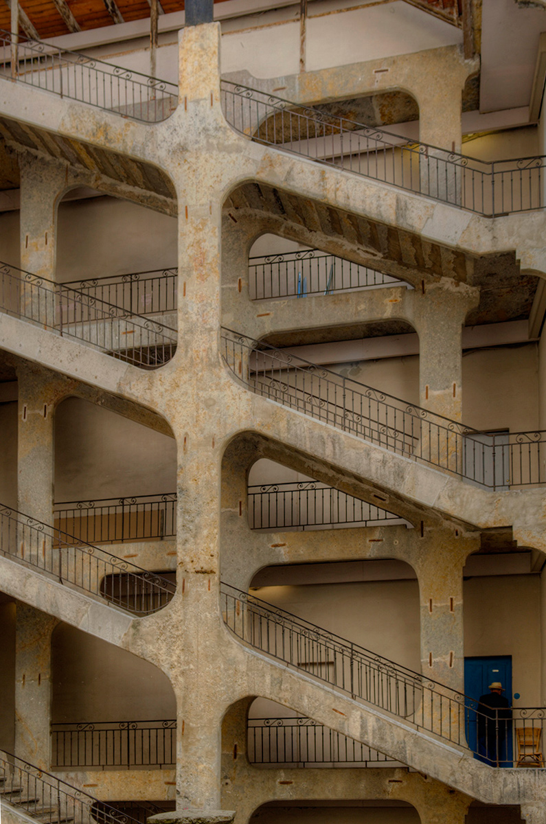Interessante struttura ottimamente ripresa,anche la piccola figura umana è una marcia in più.Concordo sui due piccoli tagli in alto ed il basso per ottimizzare le "chiusure". Ok! Ciao