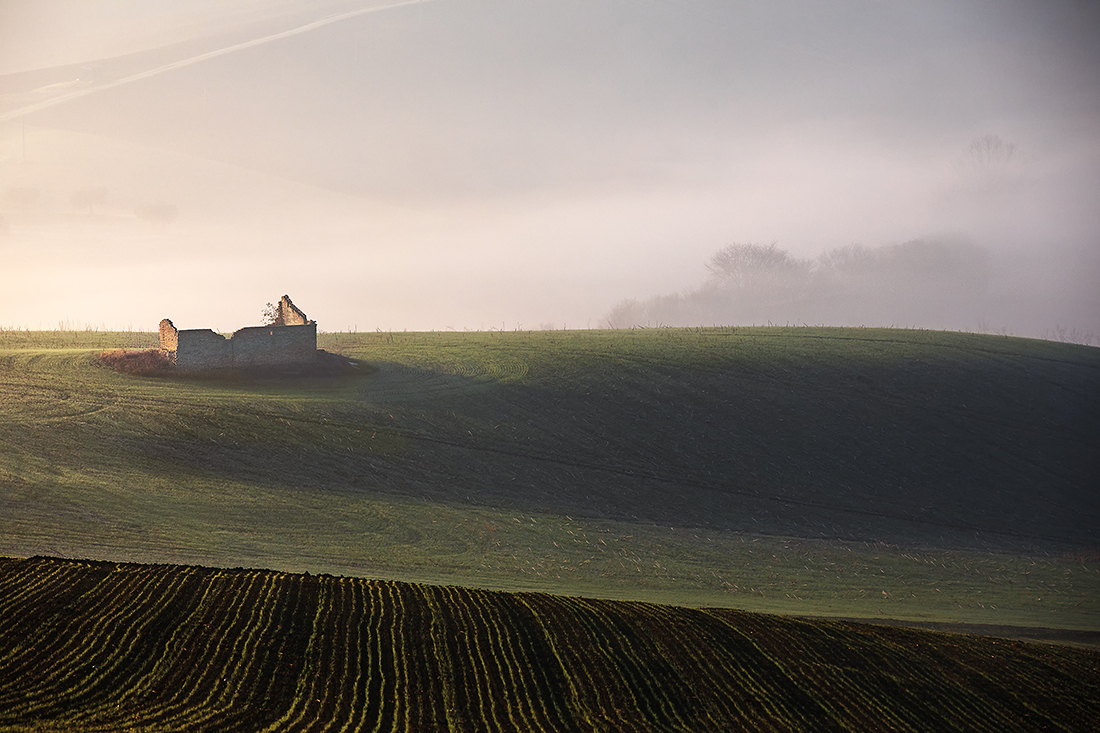 splendida immagine nella quale lo sguardo viene subito catturato dal verde vivo della collina in primo piano in una piacevole contrapposizione con i piani a seguire avvolti dal quella foschia che si intensifica verso lo sfondo, senza parlare dell'ottima composizione con la presenza del rudere  _________________ Angelo