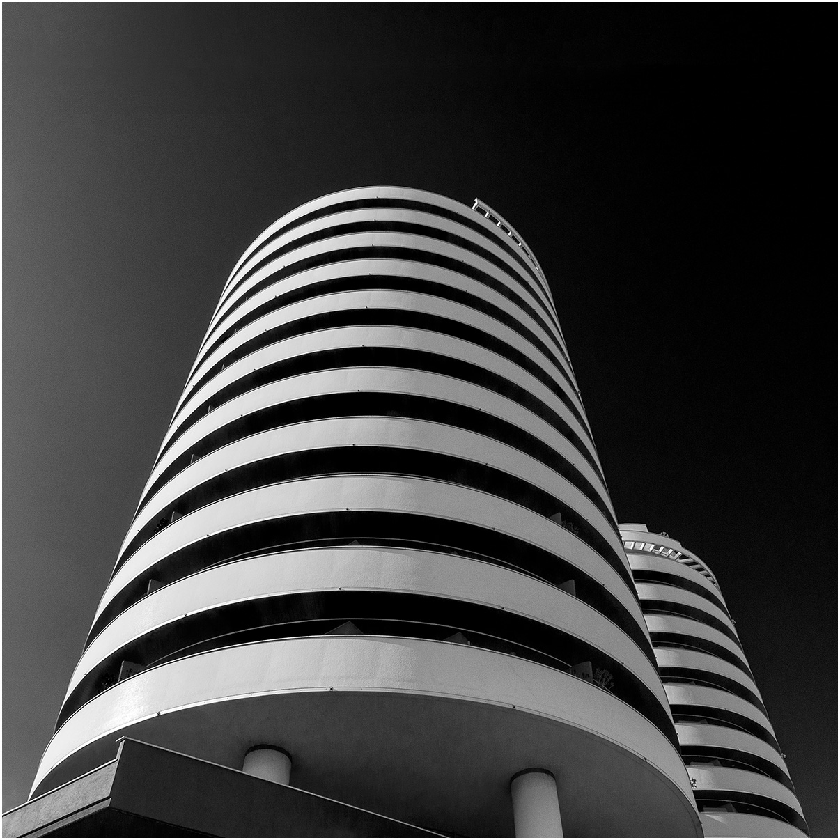 Molto tridimensionale l'insieme dei due cilindri...e molto pregevole il BN che ha creato un cielo scuro...liscio e senza artefatti.