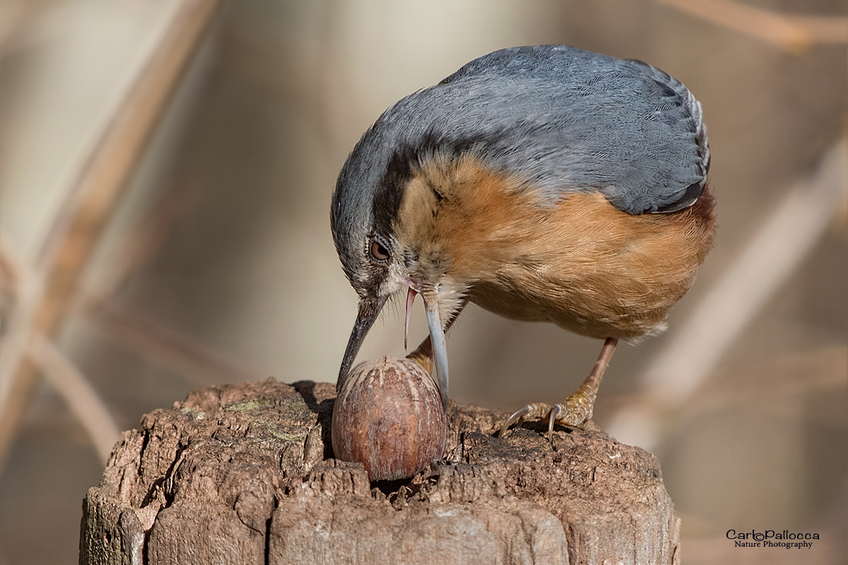 e adesso con grande maestria la posiziona incastrandola e con caparbietà a suon di beccate la romperà per coglierne il frutto Very Happy ...bella Carlo Ok!