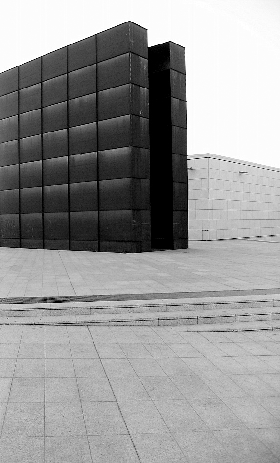 una buona foto , formale ed architettonica toglierei tutto quel pavimento e sceglierei un formato quadrato affinché tutto lo sguardo si concentri sui due muri ....