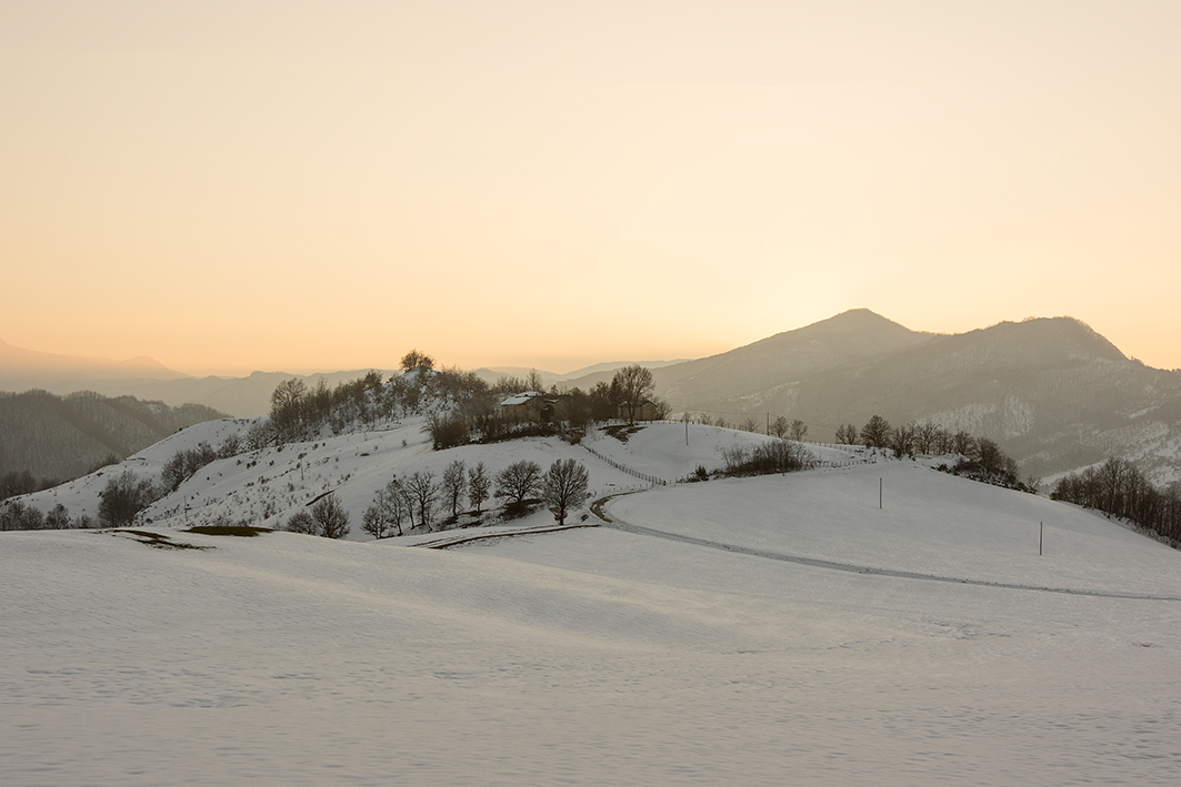 proprio bella e poetica! Anche io proverei un tiglio wide, però togliendo sia nel cielo che nella base.. Il colore caldo del cielo deve rimanere, lo esalterei eliminando la parte troppo chiara e altrettanto nella neve