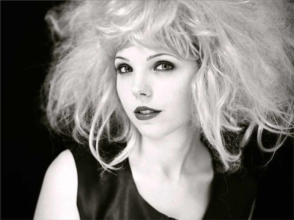 Mi piace molto questo ritratto in chiave alta con buona leggibilità dei dettagli e neri ottimamente dosati. Anche le poche ombre svolgono egregiamente il loro compito come quella fra il viso ed i capelli che dona tridimensionalità e spessore. Ottimamente gestiti anche i capelli che solo in un paio di piccoli punti hanno perso leggibilità. Il leggero viraggio dona all'immagine un tocco di originalità.