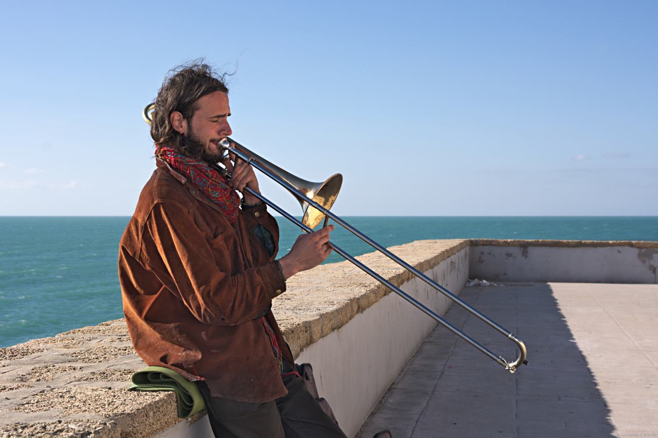 Allora si, ho anche questa immagine del suonatore in quel luogo. Cadice, 25/12/2016, il giorno dello scorso Natale.