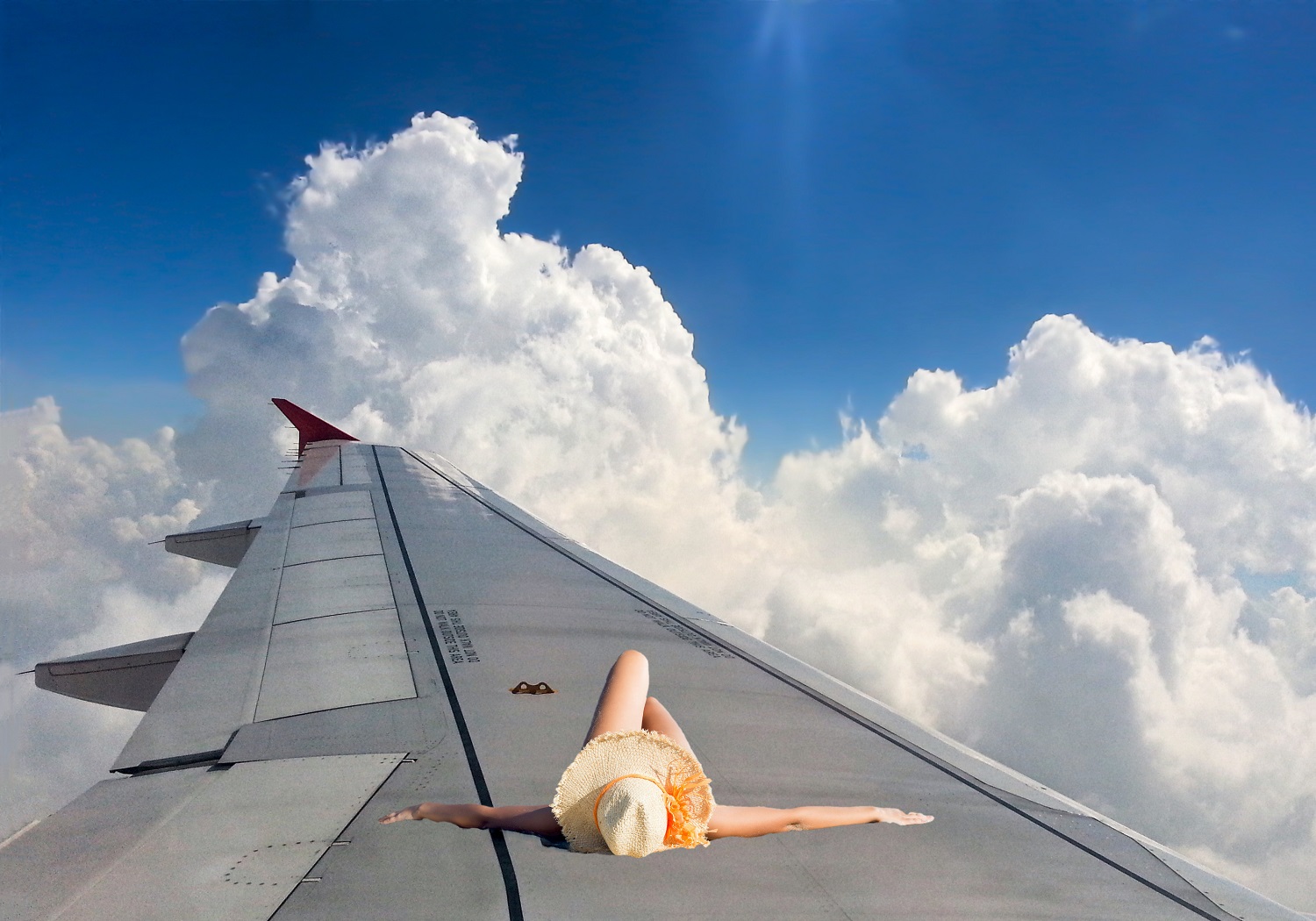 Nell'altra versione vedo una persona "realmente distesa" intenta a tintarelleggiarsi su di un'ala ferma a terra sopra alla quale è stato posto un cielo con nuvole. Tutto quà, chiamale se vuoi "impressioni" irreali.