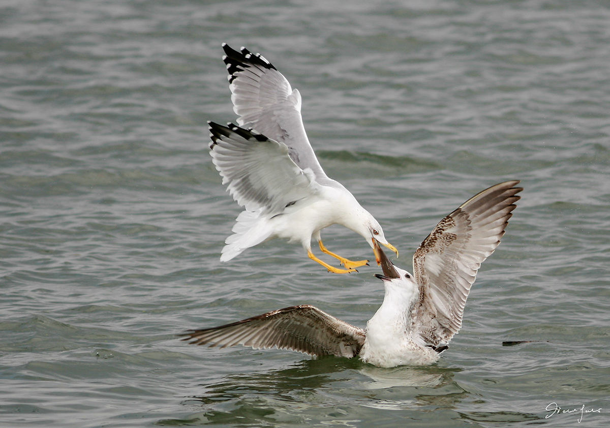 Ti assicuro che il gabbiano in volo era il legittimo proprietario del pesce ( documentato da una foto che ho postato in dicembre ). Lo voleva portare sulla terra ferma ma gli è caduto. Lo ha preso la femmina che lo stava mandando giù quando è arrivato come un falco e se lo è ripreso. Ho dieci scatti di tutta la scena.