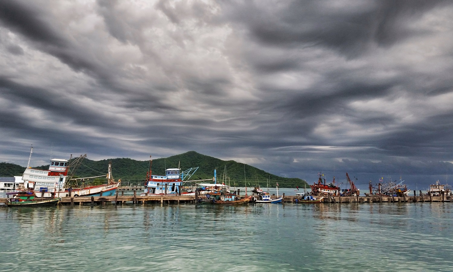 Alla morbidezza di queste nuvole colme... risponde con buona scelta compositiva la sottile file di imbarcazioni in sosta: piccole e grandi, tutte insieme concordi , tramite con un fitto intreccio di alberi, funi, ormeggi, a creare una vera barriera all'oltre del mare aperto.