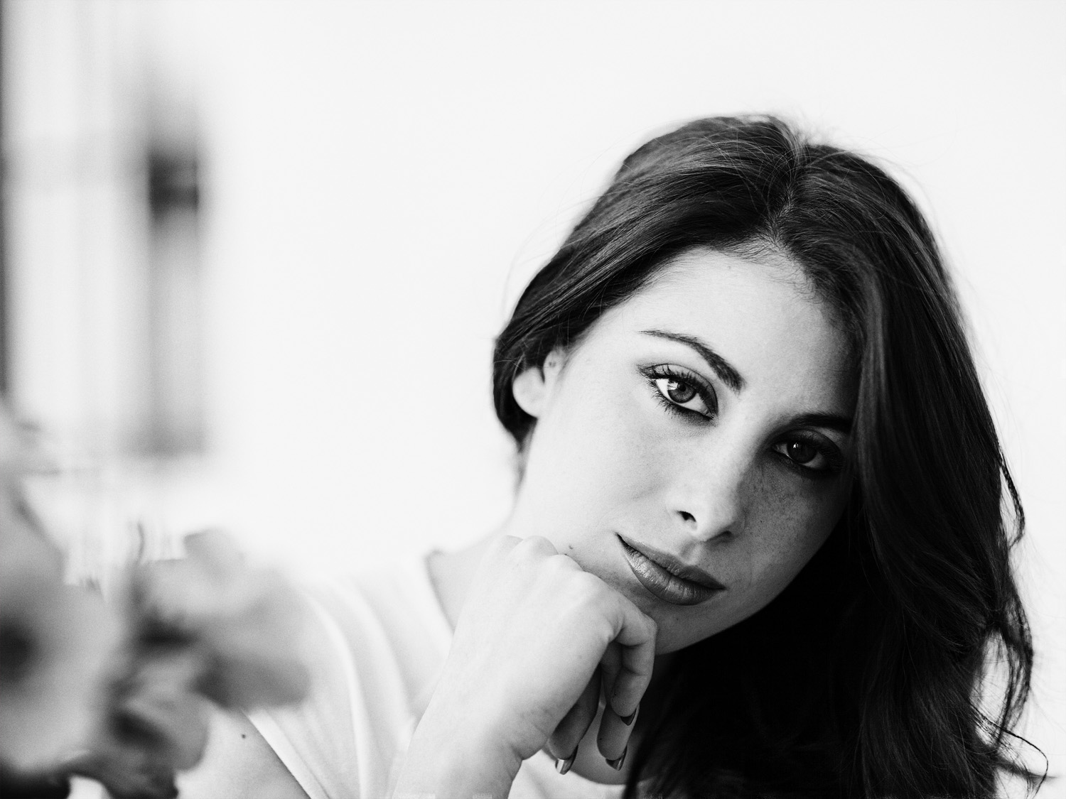 La chiusura delle ombre rende le parti scure veramente dense, e soprattutto all'occhio sinistro di lei, questo comporta una certa perdita di brillantezza. Però nell' insieme questo ritratto mi piace molto, con la espressione serena di lei, colta con il capo in lieve inclinazione, e con una resa dello sfocato a diaframma 2 veramente ottimo. Per la compo il consiglio di taglio parziale è praticabile, anche se io non trovo il primo piano sfocato alla nostra sinistra così spiacevole.