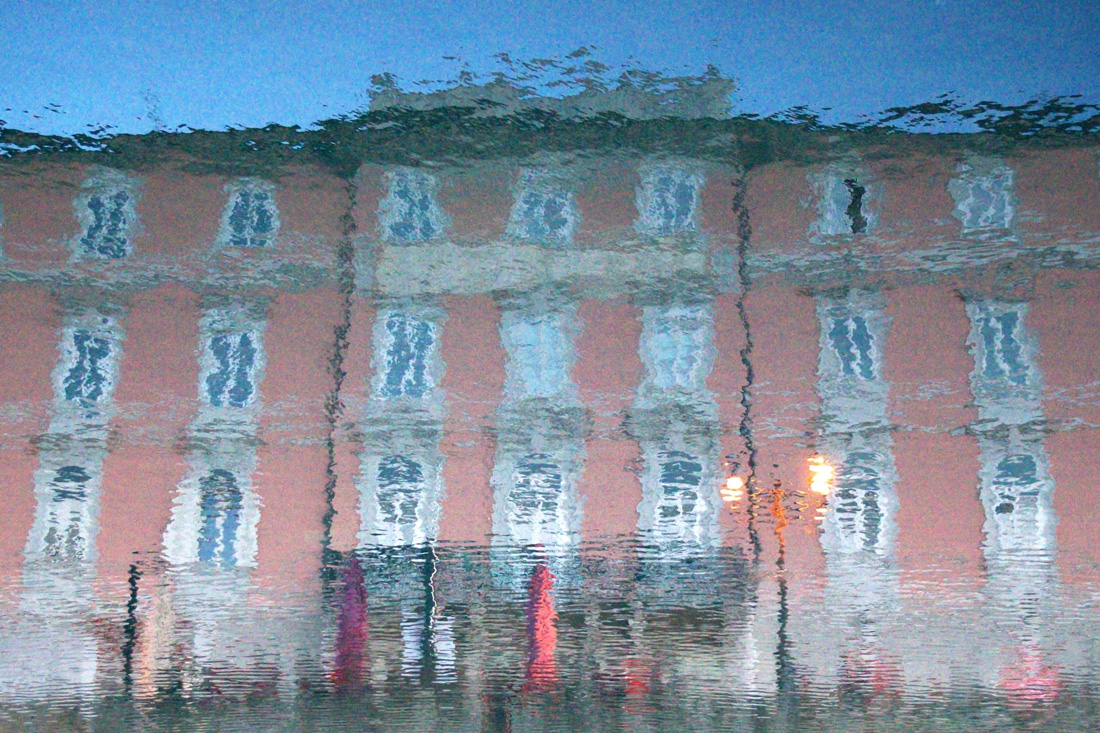 Che bel riflesso e che contrasto concettuale tra il baluginare dell'immagine nell'acqua e la tua precisione nell'indicare il nome del palazzo.