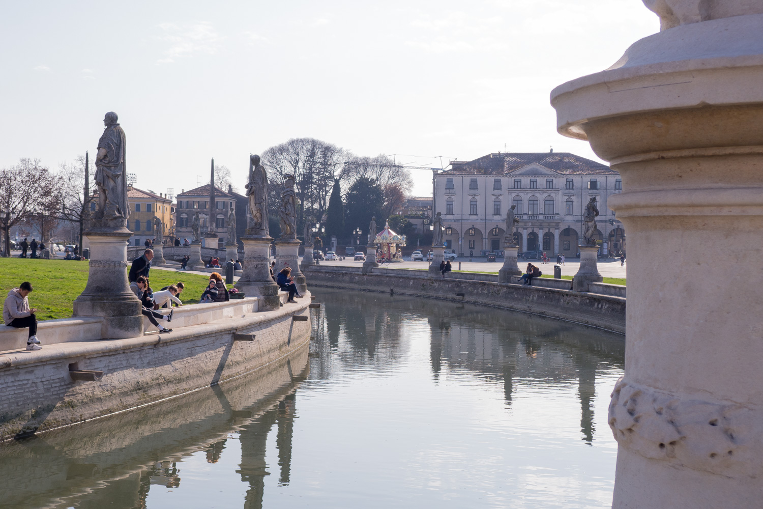 Grazie Rosanna per il passaggio e le osservazioni; in effetti volevo far stare l'ansa del fossato, le persone finalmente in abiti leggeri, la piazza e il pilone a dx per dare profondità, come dici ci sono troppi elementi.