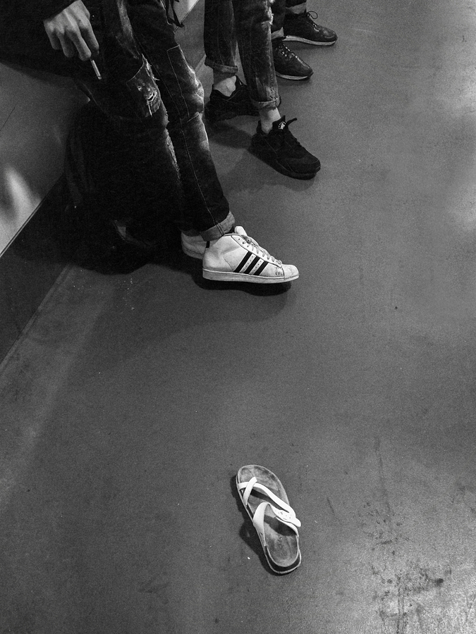 | Possibile che tutti abbiano scelto scarpe alla ciabatta? Sola soletta cosi... Bell'occhio Gian e buono il b/n . Sempre piu street a quanto vedo