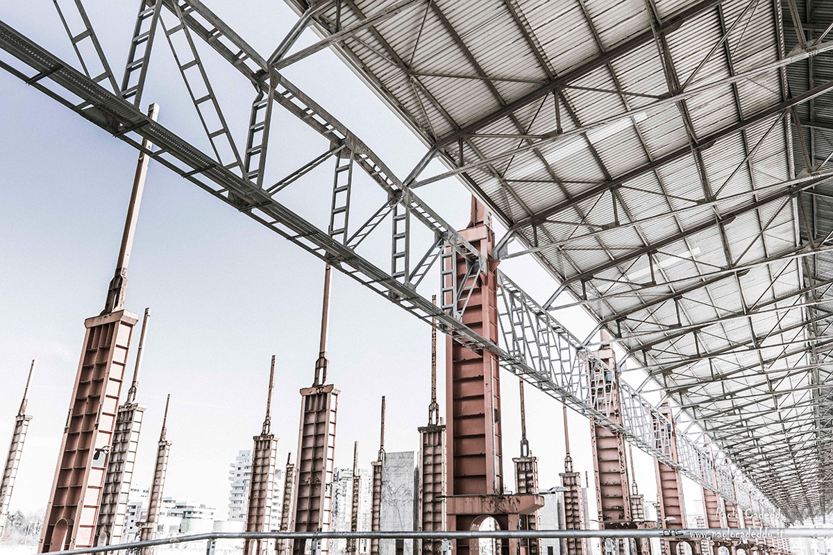 Una città quasi onirica, in cui cemento e acciaio si distillano nella chiarezza, tendono al linearità nette, e ombrosità annullate. Non commento nulla tecnicamente, mi limito a dire che questo approccio restituisce una visione quasi progettuale, uno sguardo urbano a strutture e materiali che è più idealmente volto al futuro che al presente, e che e mi piace...