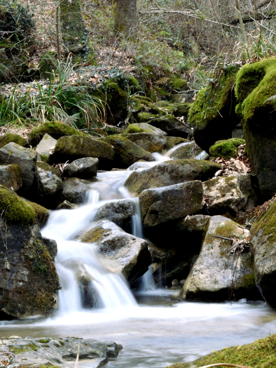 Molto bella questa cascatella del ruscello!Come mio gusto personale avrei preferito un tempo di scatto più rapido per il mosso dell'acqua,anche 1/8 sec che avrebbe meglio definito i rivoli e permesso un diaframma meno chiuso di f.36.