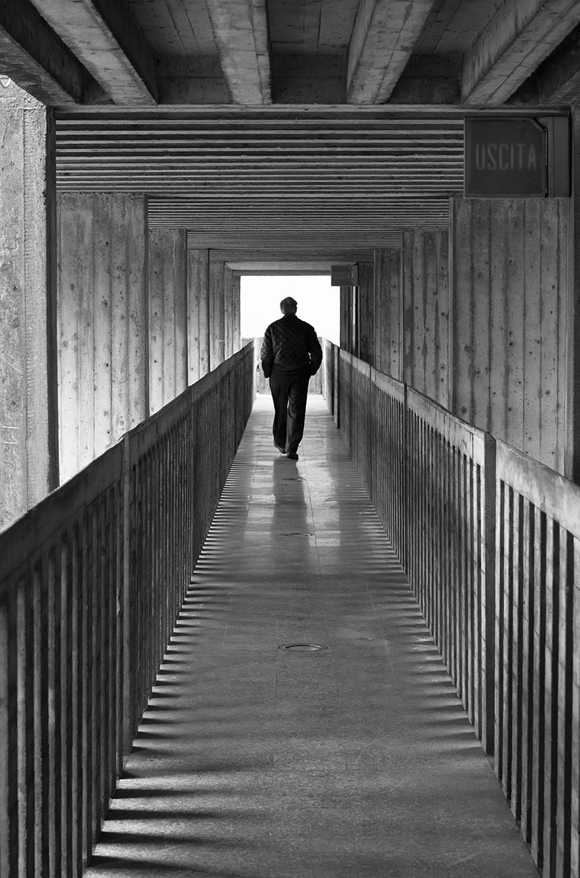 Una bellissima immagine, a mio avviso efficace tanto nella composizione - rigorosa e piacevole - quanto nel b/n. Se possibile avrei cercato una maggiore pdc, chiudendo un po' il diaframma ed al limite tirando le iso.