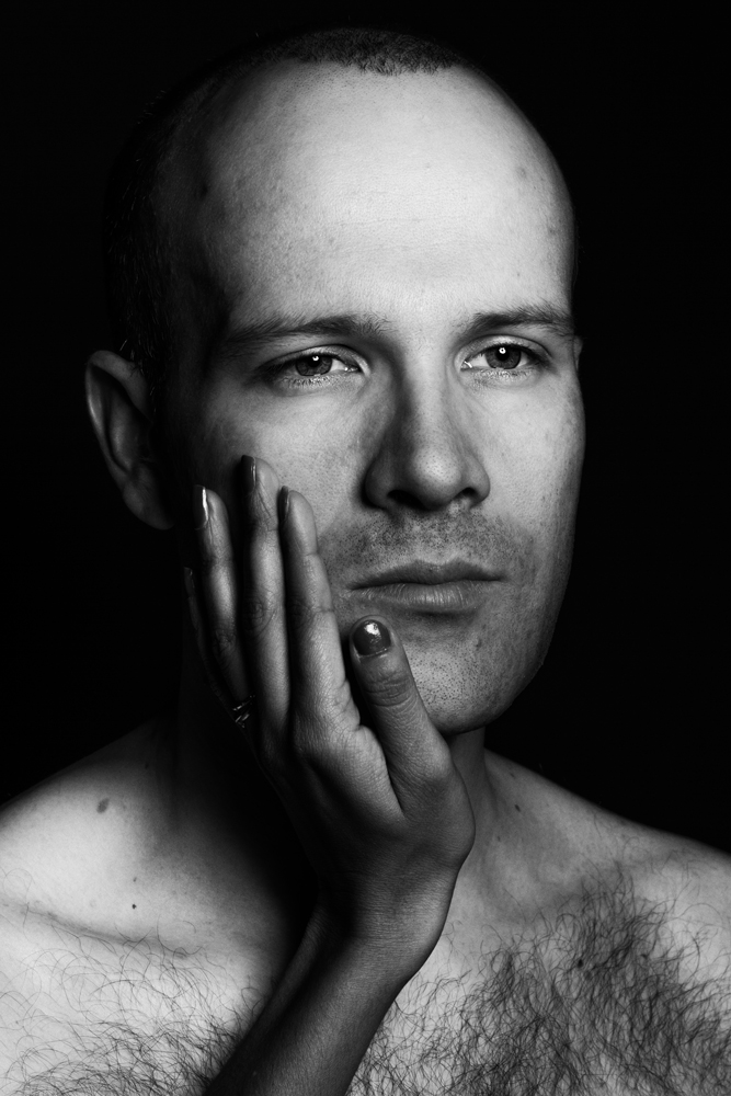 Qui, lo sguardo del soggetto, così distante, assorto in un pensiero che pare portarlo mestamente lontano, contrasta con la materica presenza di quella mano la quale pare cogliere solo la superficie della pelle senza poter scuotere Gianluca dalla sua mestizia.