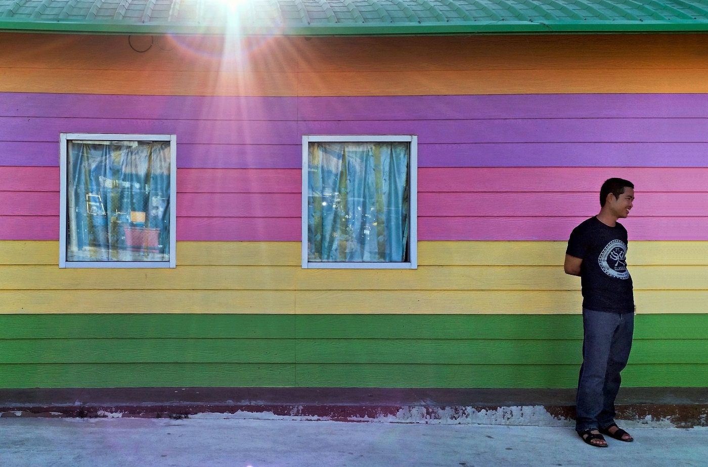 Il sorriso di lui, inoltre, sembra voler proiettare verso l'infinito (che non si vede, ma "si sente") l'allegria dei colori che lo precedono.