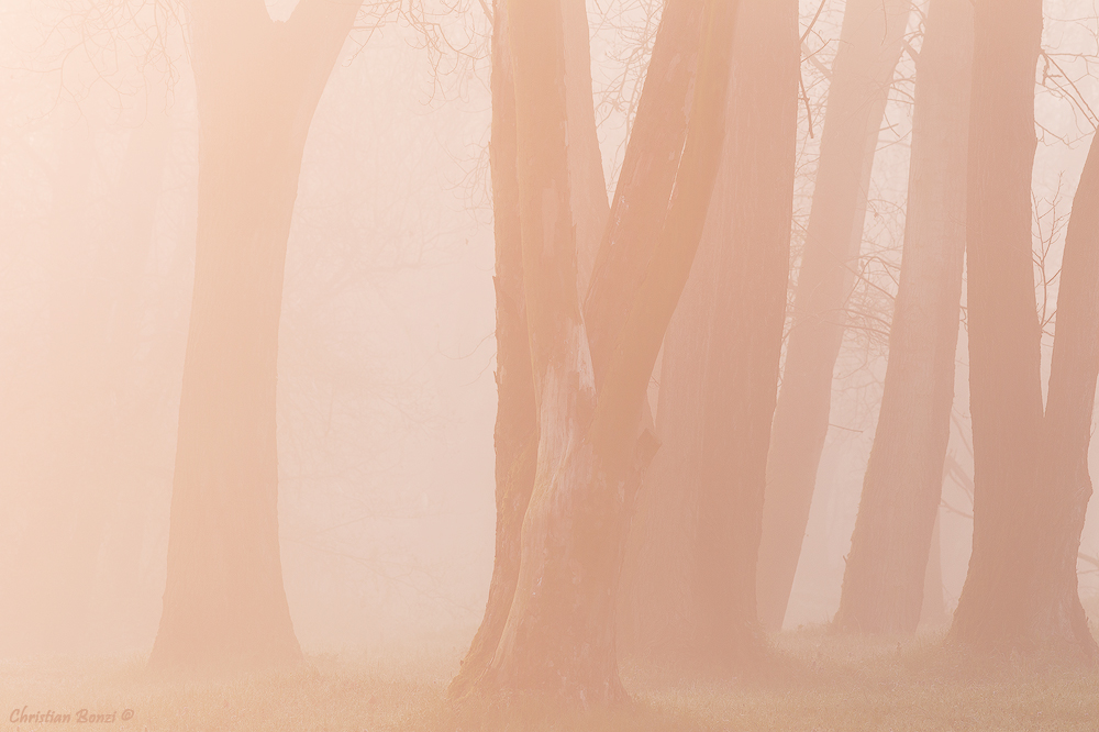 Non ho fatto viraggi salmone...l'alba di stamattina con la nebbia ha creato queste tonalità.