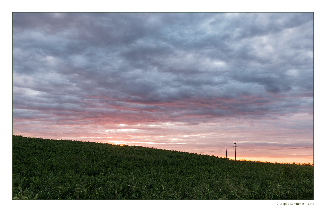 mi piace questa gestione cromatica di assoluta naturalezza; rifuggi la scontata noiosa accensione fotoscioppica di giallirossirosa e restituisci un quadro fresco e intrigante, a voce sommessa, in cui due pali spuntano appena eppure han la forza di protagonisti; questi tuoi accenni , pieni di cose non dette ma suggerite e per questo eleganti , continuano a raccontare le piccole grandi gioie visive ed emotive della nostra piana _________________ .. comunque, continuo a pensare che l' unica cosa che con certezza sappiamo della vita, è che non sappiamo cos'è ..