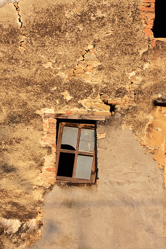Importantissima per la valenza dell'immagine a mio avviso la squadratura della finestra. Che seppur piccola piccola e posta in un punto inconsueto del fotogramma lo riscatta e riesce a motivarla da sola. Trovo giusto anche che tu abbia lasciato uno spiraglio sul margine superiore destro con un frammento di un'altra finestra vuota e corrosa perchè ci da la sensazione del continuos della casa abbandonata.