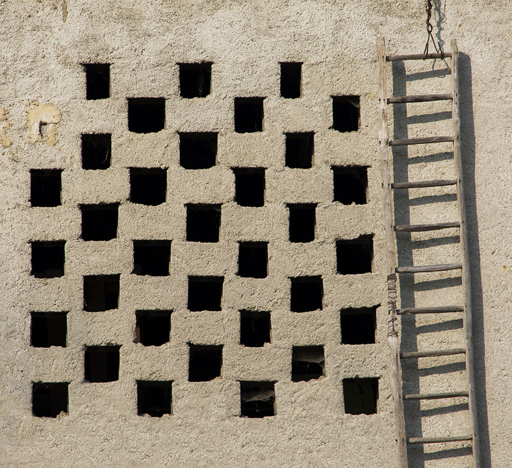Bello il formato che richiama la geometria dei fori nel muro,ottima composizione con la scala che,anche con la sua ombra,introduce interessanti elementi lineari,simpatico il titolo.Complimenti!