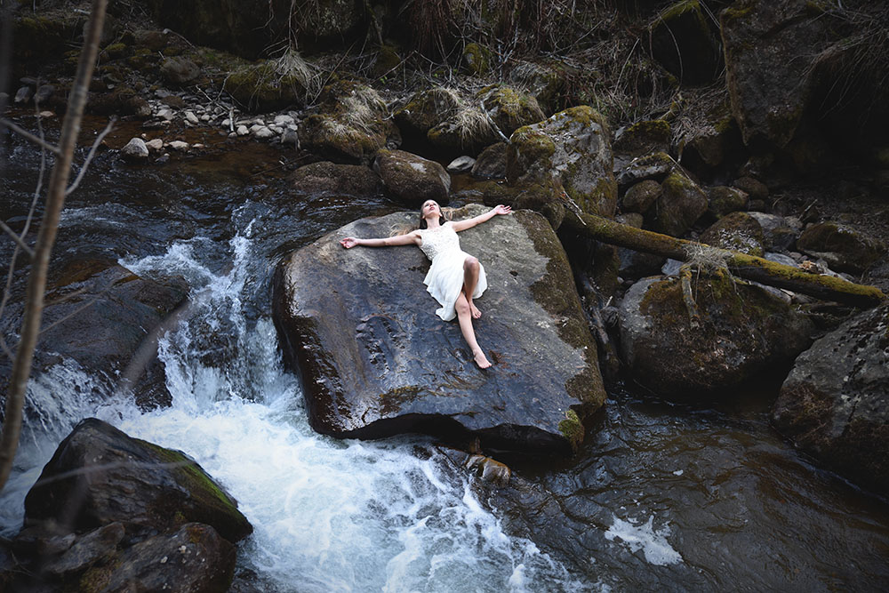 La modella sembra... morta, quasi fosse stata abbandonata sul letto del fiume.