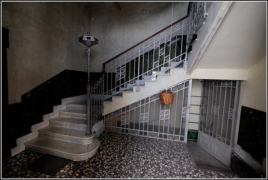 L'androne è pulito, per cui deve esserci vita e il cestino per la 'spesa' è una ciliegina.