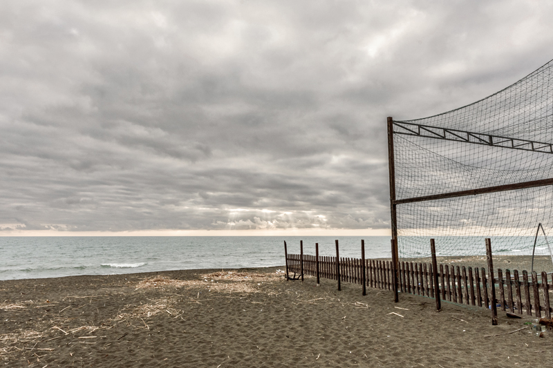 Interessante la scelta di includere la parte destra, creando una sorta di direttrice diagonale. Tuttavia, viste le particolari condizioni meteorologiche e cromatiche, sarei attratto anche da una prova più classica, una sorta di minimal in cui far dialogare solamente sabbia, mare e cielo.