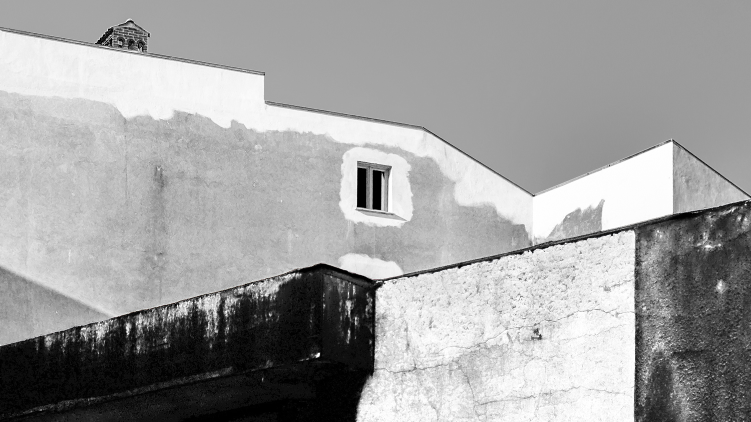 Due cose evidenti sono la pesantezza della post produzione (tra cui la maschera di contrasto esagerata direi) e quel comignolo a sinistra completamente estraneo alla coerenza di questa rilettura in chiave di geometrie piane e materiche insieme della facciate degli edifici e delle ombre.